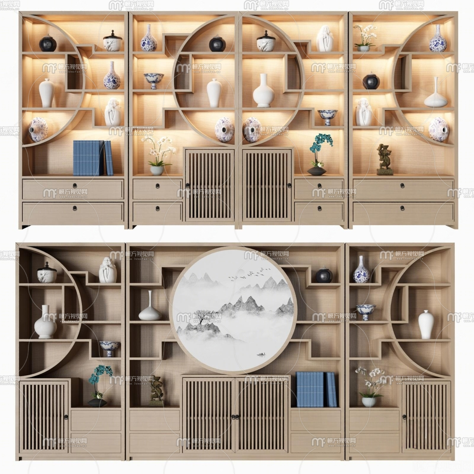 新中式博古架3D模型(ID:0024736)