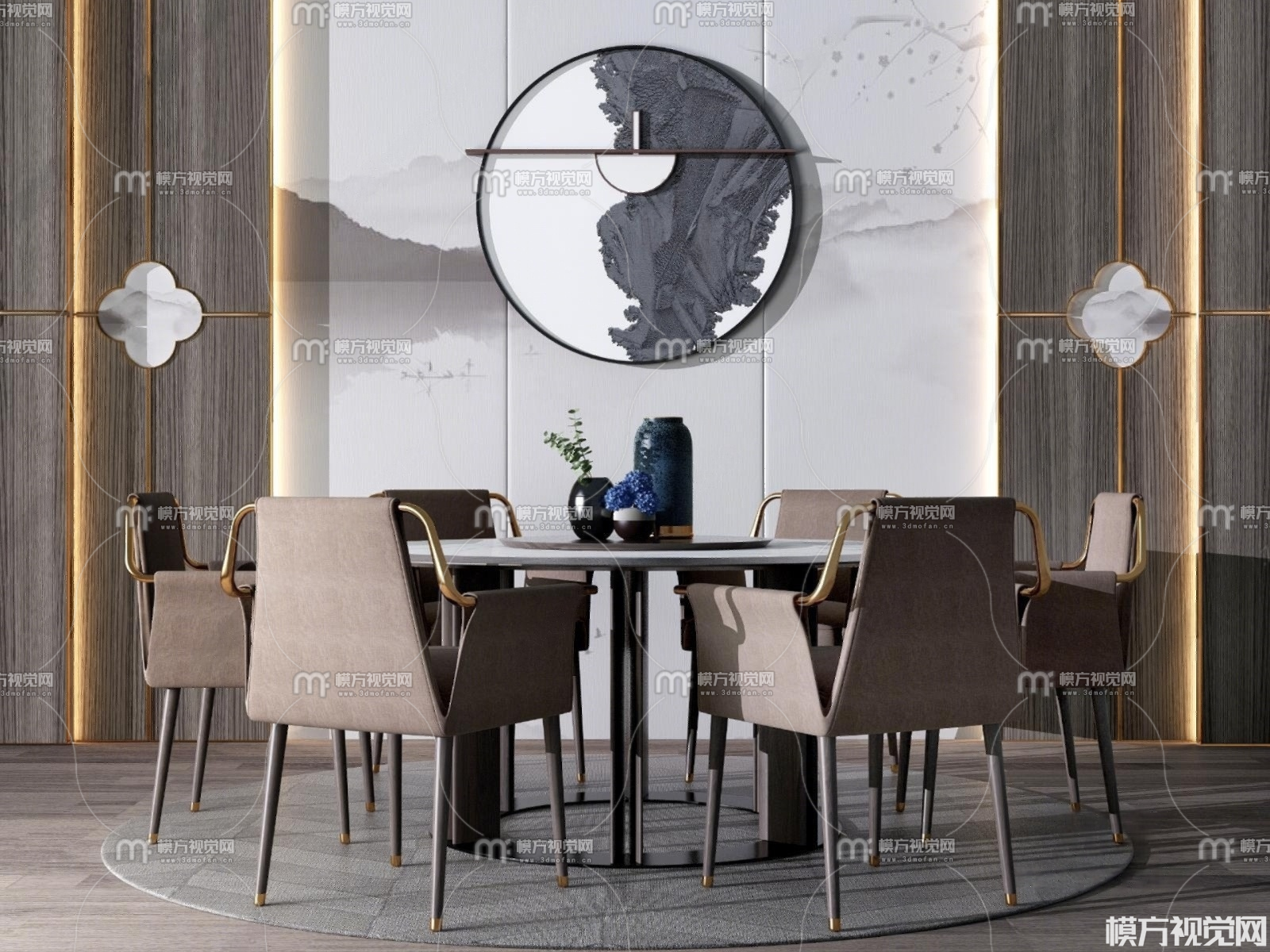 新中式餐桌椅组合3D模型(ID:0024745)