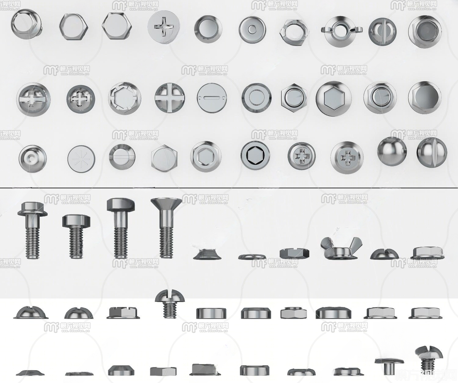 螺丝 螺丝帽 螺母 螺钉3D模型(ID:0002476)