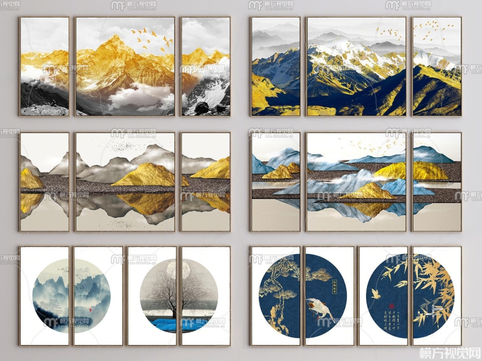新中式挂画 装饰画组合3D模型(ID:0024829)