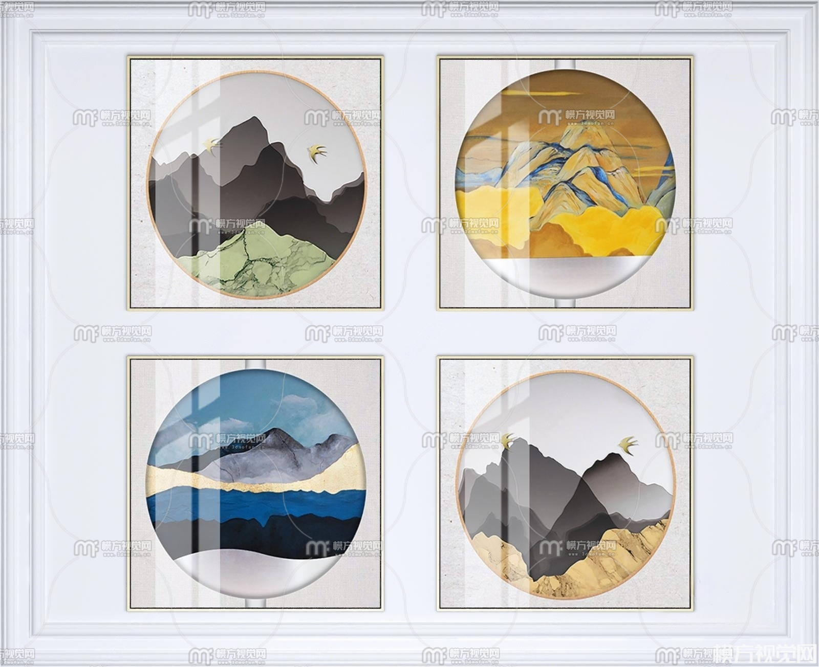 新中式挂画 装饰画组合3D模型(ID:0024832)