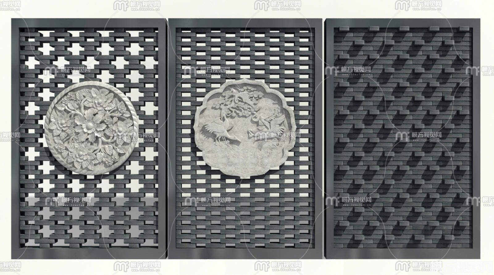 新中式灰砖拼花景观墙3D模型(ID:0024848)