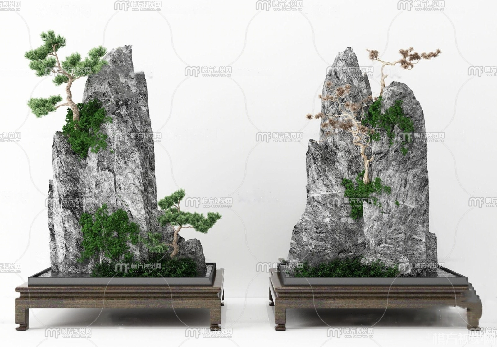 新中式假山松树摆件3D模型(ID:0024858)