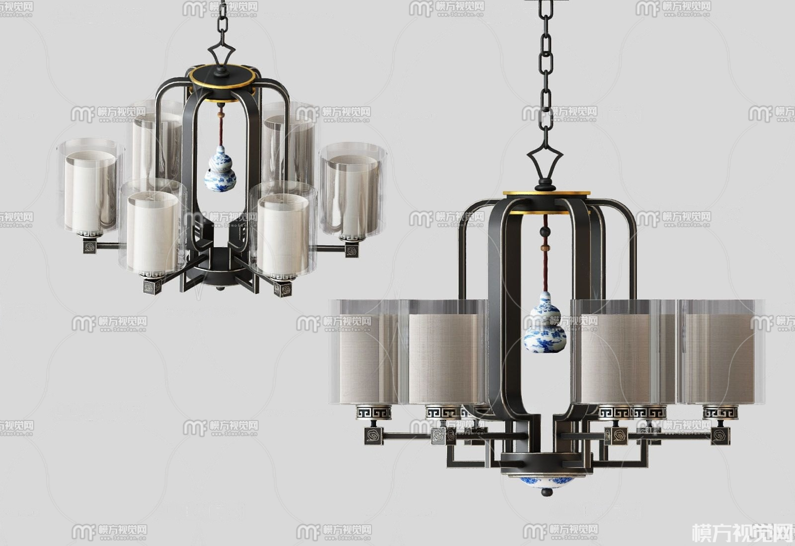 新中式金属多头吊灯3D模型(ID:0024867)