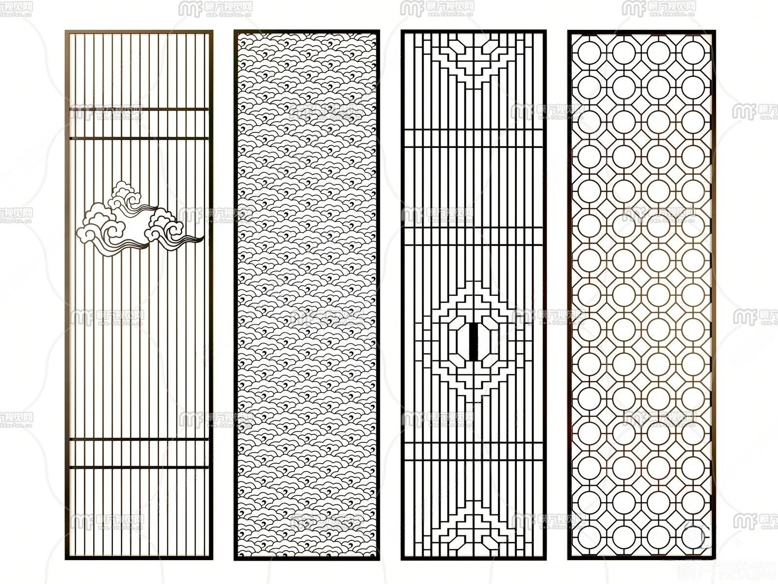 新中式金属屏风隔断组合3D模型(ID:0024871)
