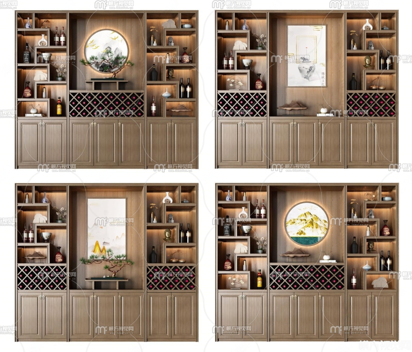 新中式酒柜组合3D模型(ID:0024891)