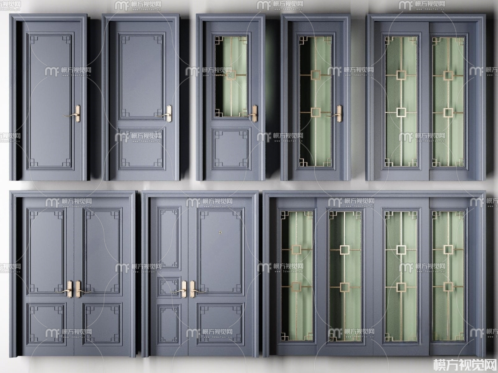 新中式双开门 入户门 玻璃门3D模型(ID:0024919)