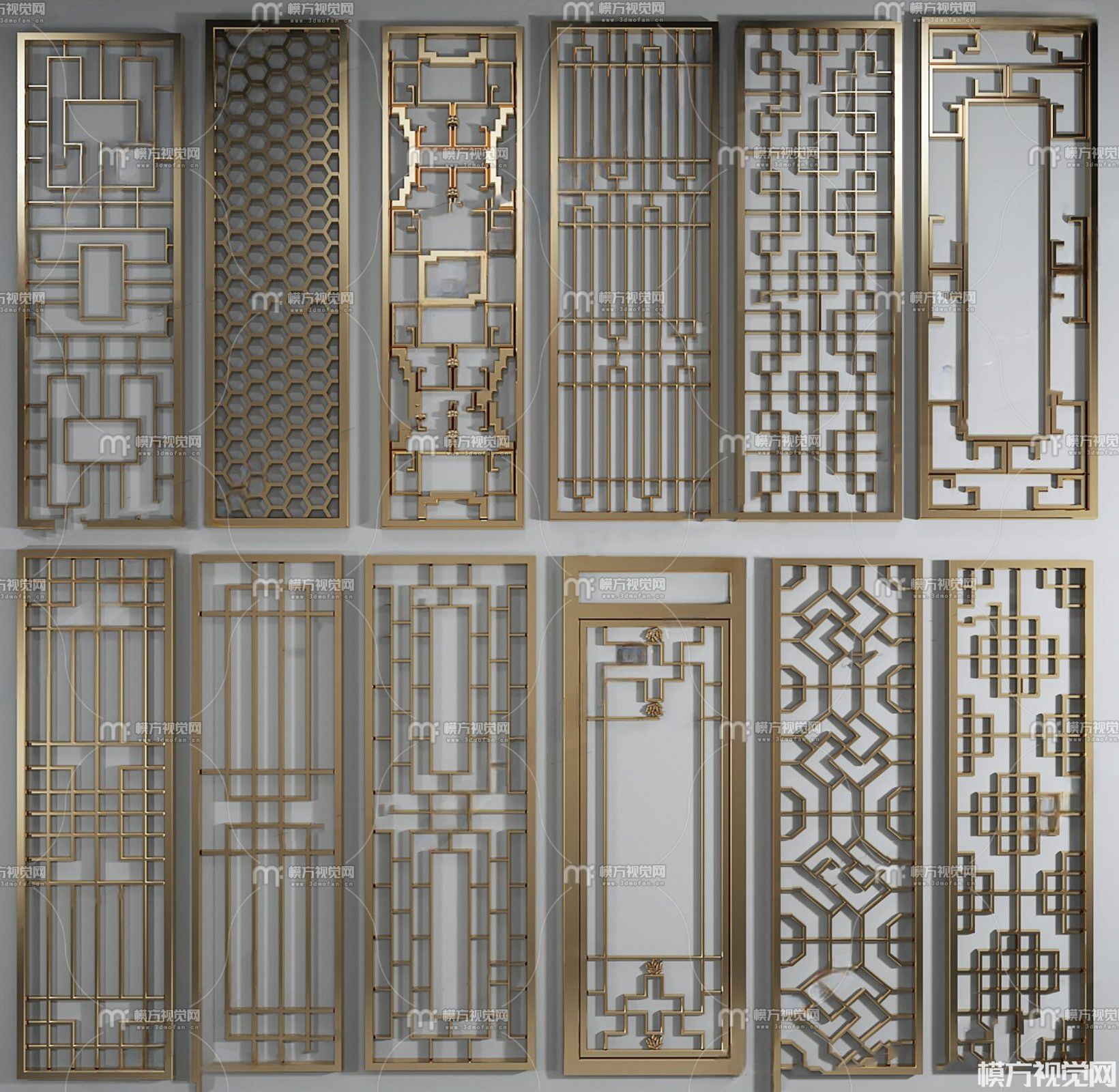 新中式金属屏风3D模型(ID:0024926)