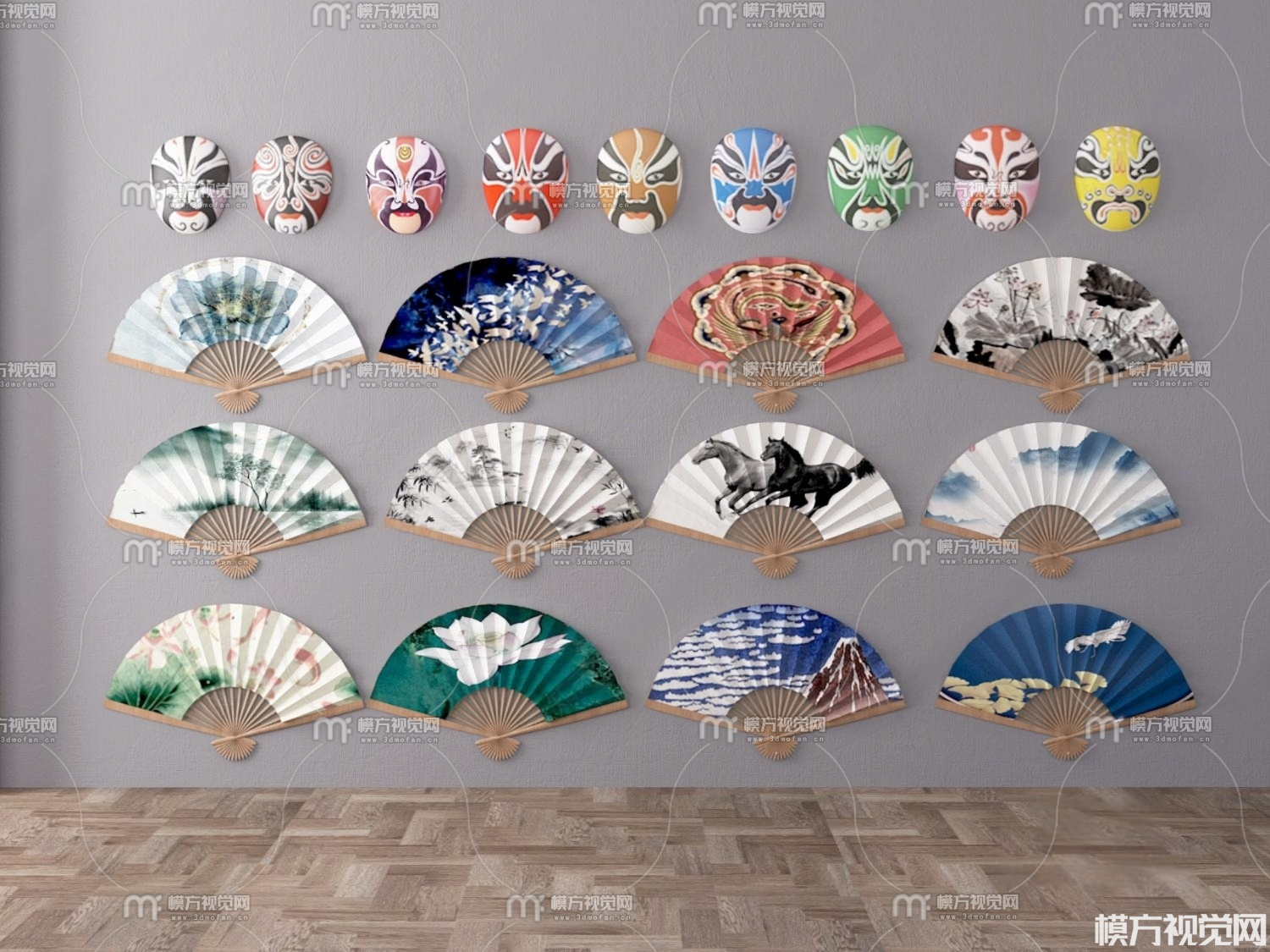新中式扇子 面具3D模型(ID:0024948)