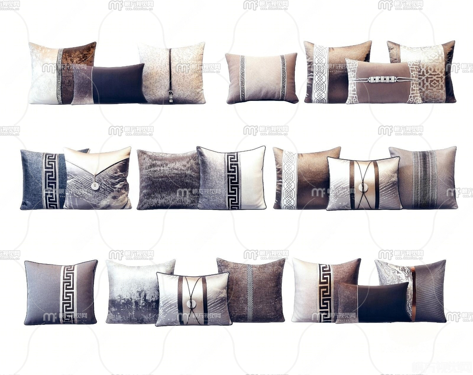 新中式奢华抱枕组合3D模型(ID:0024950)