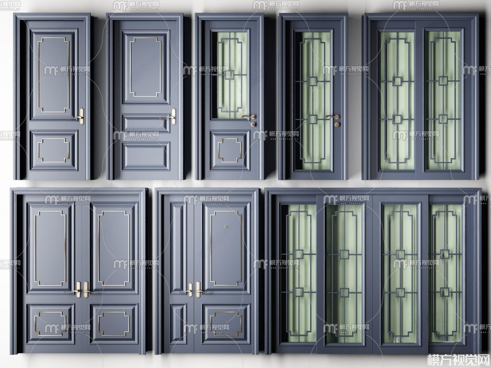 新中式房门 单开门 玻璃门 推拉门3D模型(ID:0024961)