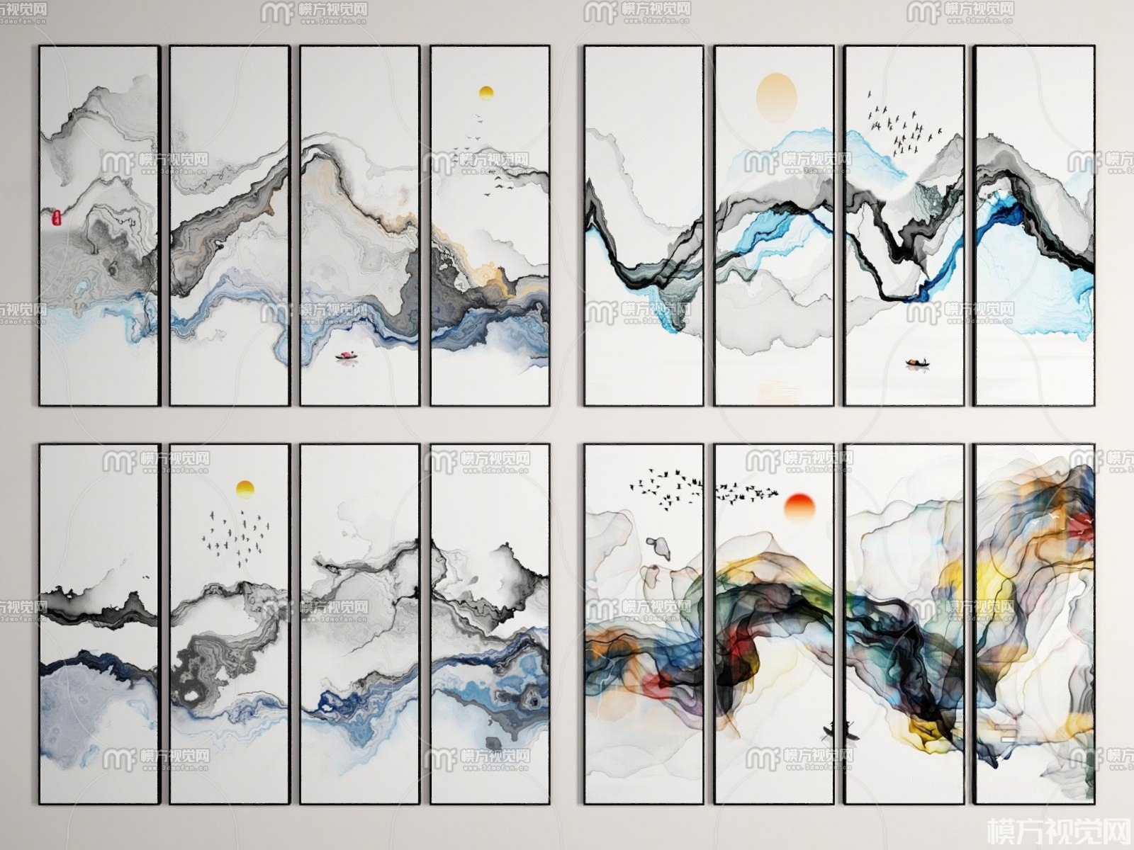 新中式水墨山水装饰画3D模型(ID:0024978)