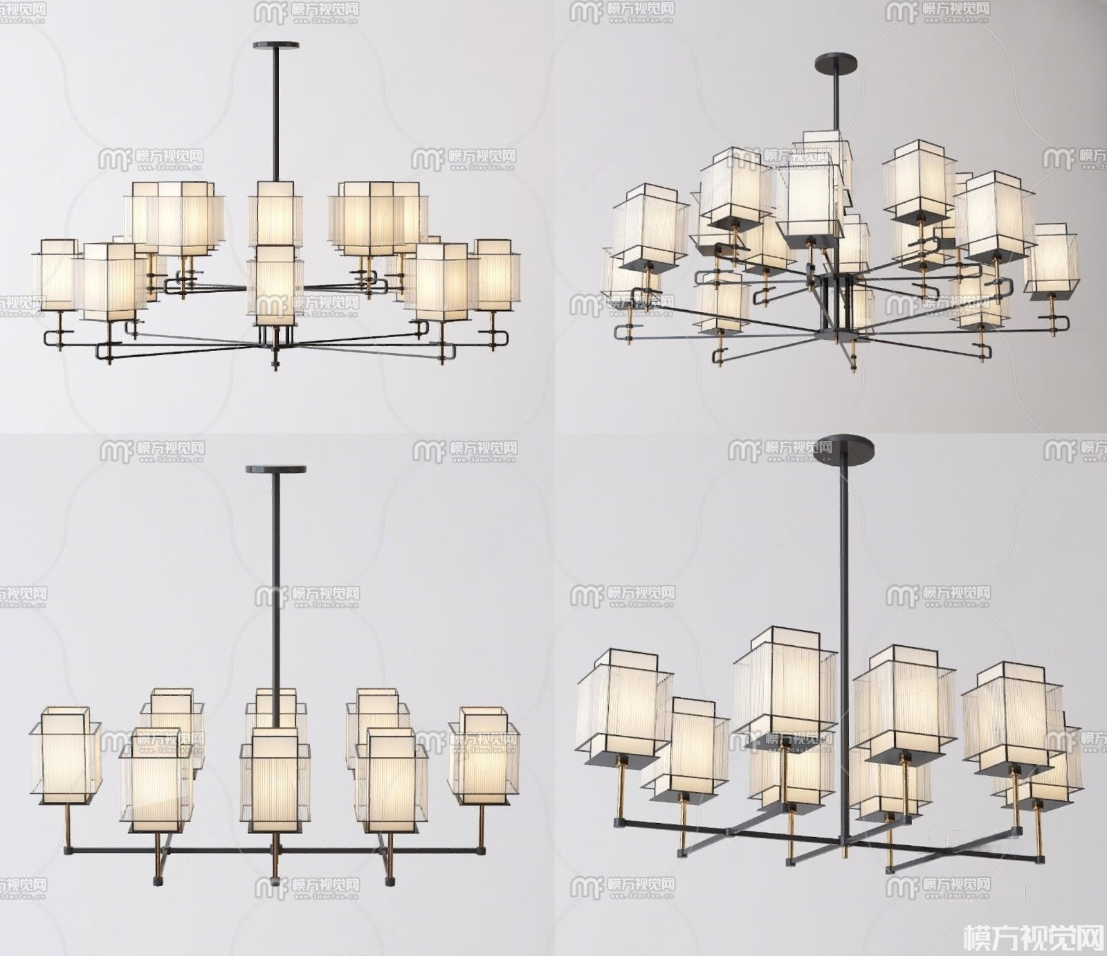 新中式铁艺多头吊灯3D模型(ID:0024983)