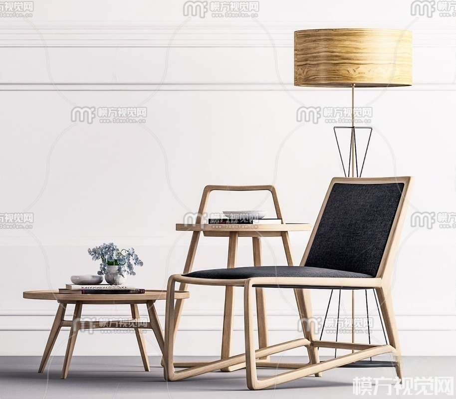 新中式休闲椅 落地灯3D模型(ID:0025009)