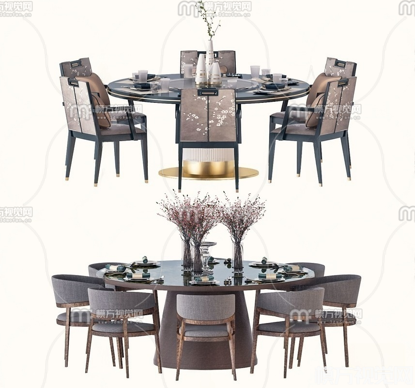 新中式圆形餐桌椅3D模型(ID:0025021)
