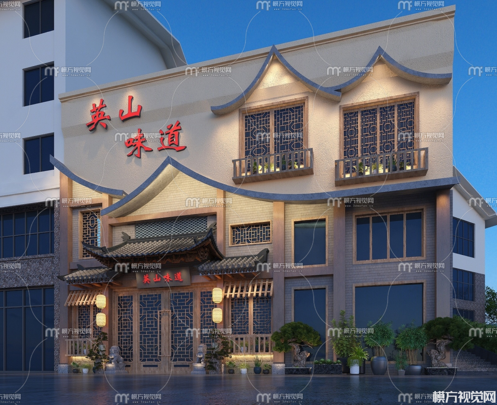 新中式餐厅门头3D模型(ID:0025073)