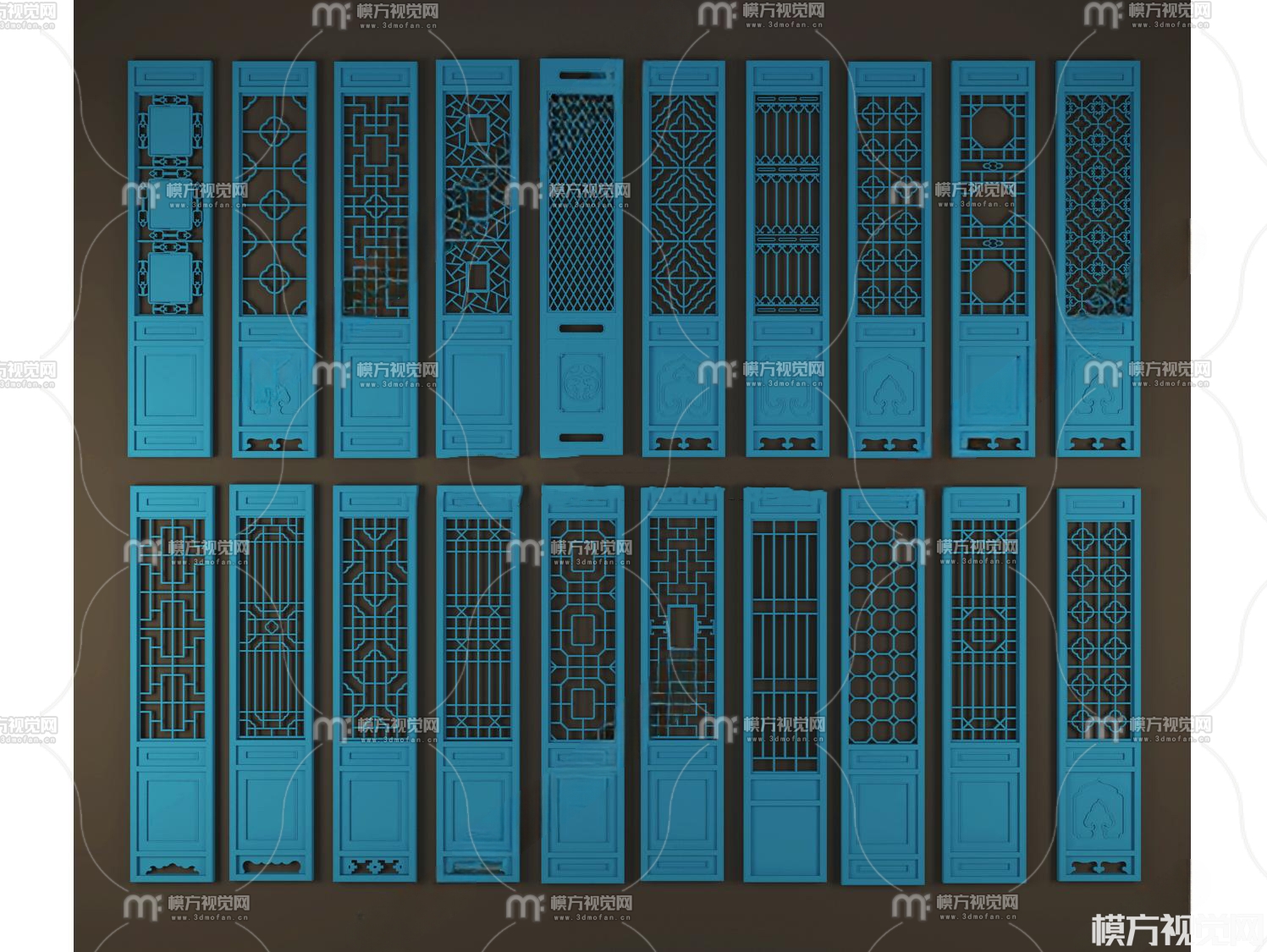 中式花格屏风隔断组合3D模型(ID:0025131)