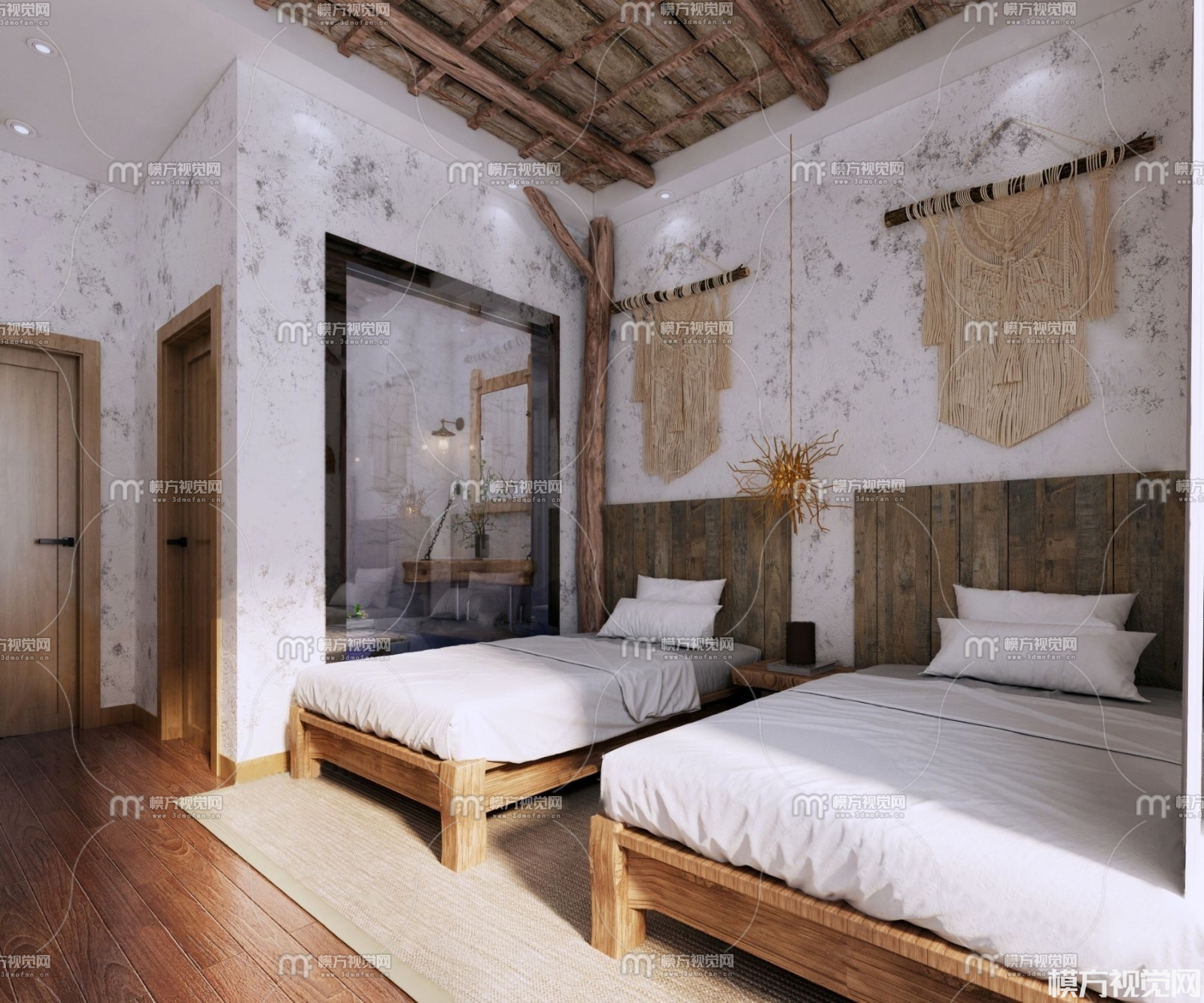 民宿酒店双人床客房3D模型(ID:0025249)