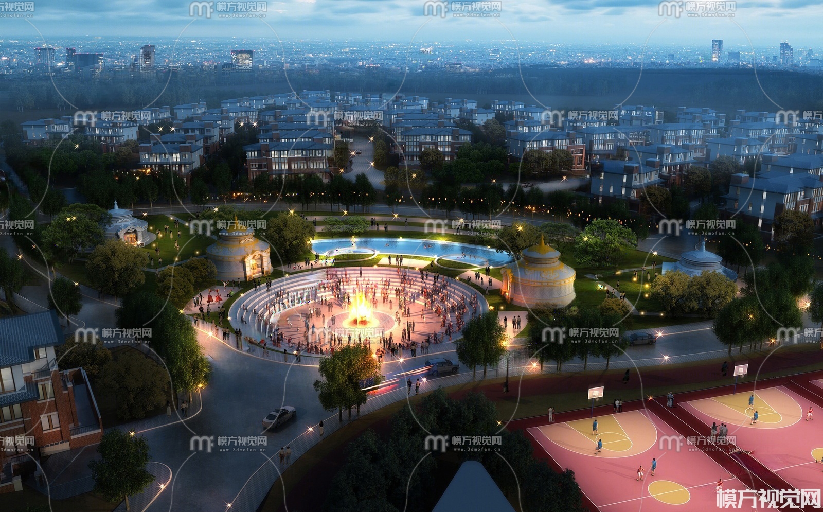 现代商业广场鸟瞰3D模型(ID:0025327)