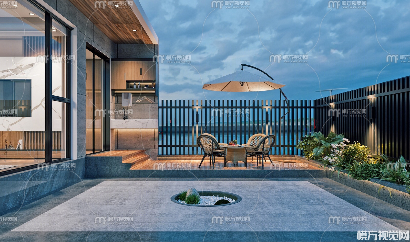 现代阳台院子3D模型(ID:0025508)