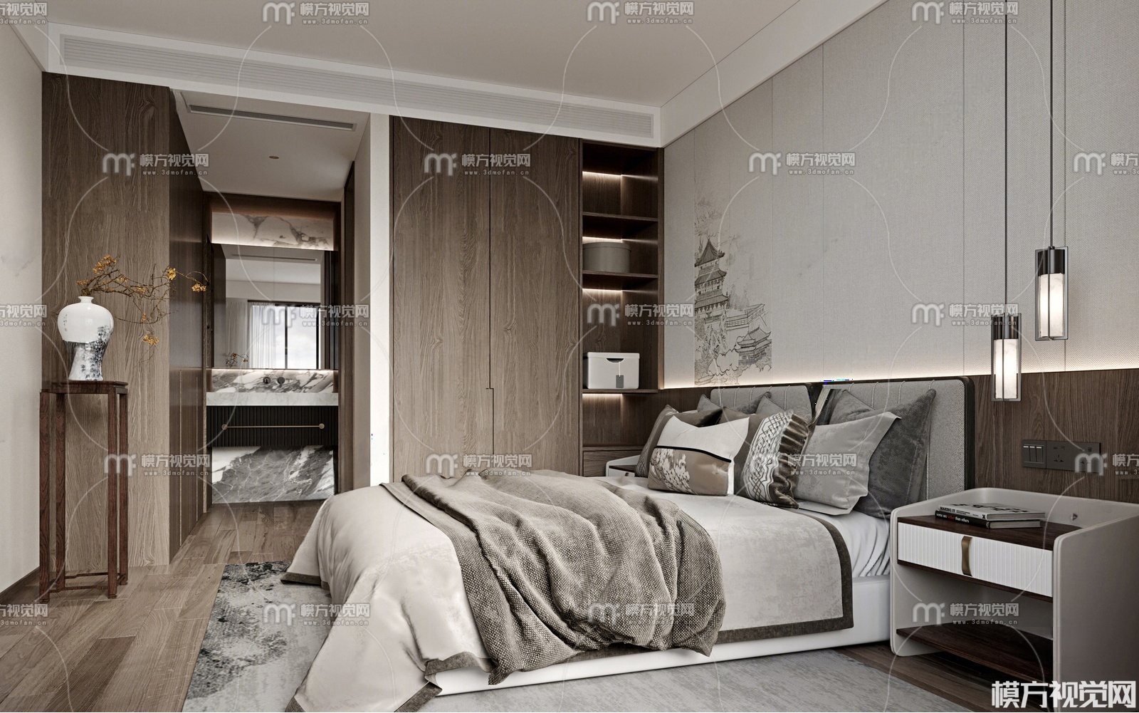 新中式家居卧室3D模型(ID:0025524)