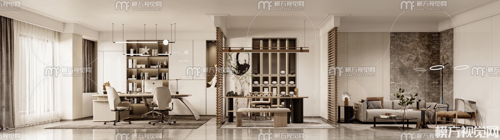 新中式经理办公室3D模型(ID:0025525)
