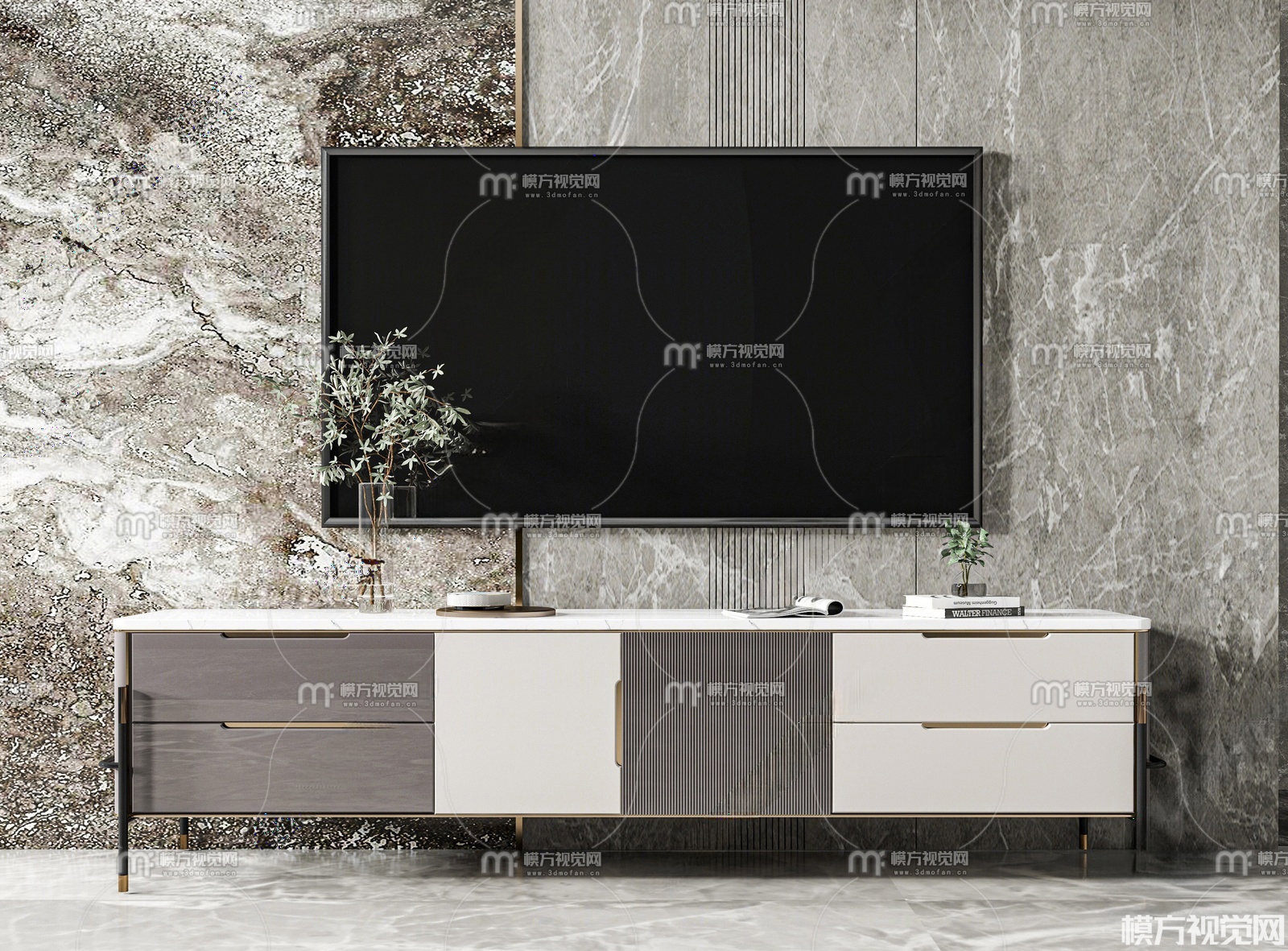 现代轻奢电视柜3D模型(ID:0025551)