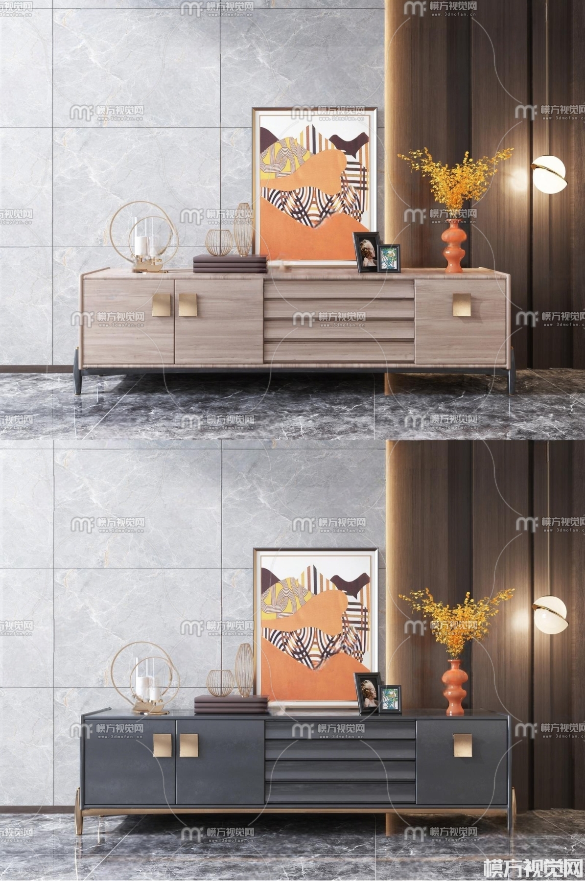 现代轻奢实木电视柜摆件3D模型(ID:0025556)