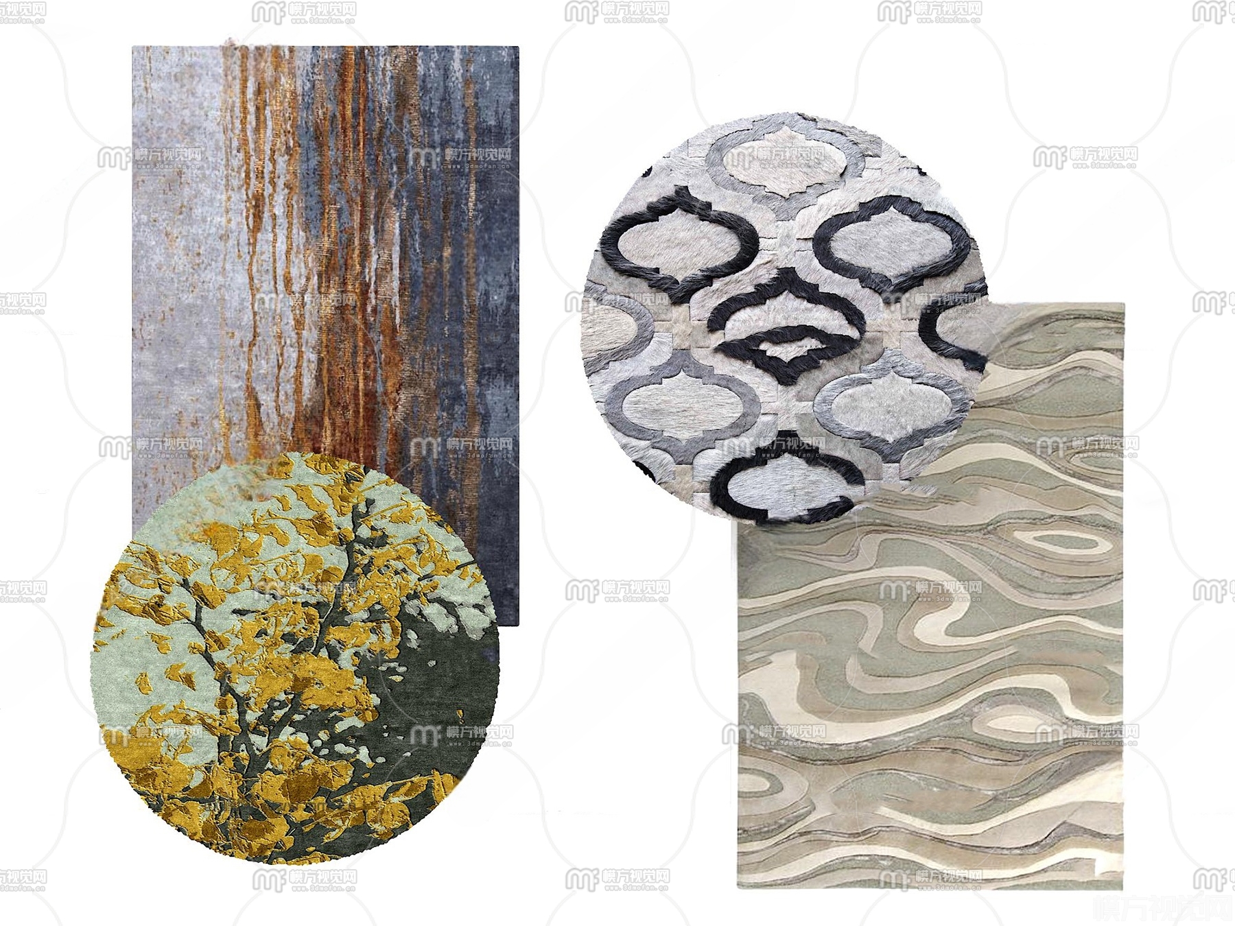 新中式地毯组合3D模型(ID:0025611)