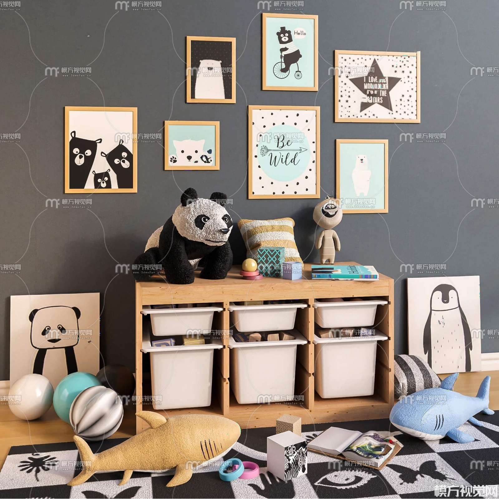 现代儿童玩具收纳柜组合3D模型(ID:0025905)