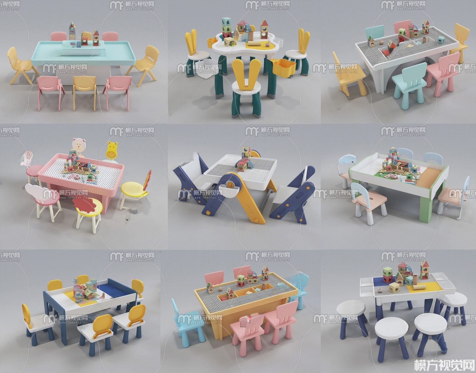 现代儿童玩具桌椅组合3D模型(ID:0025906)