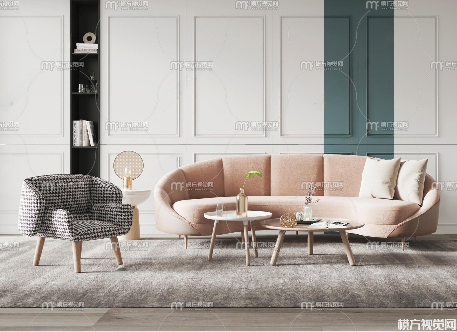 北欧布艺弧形沙发组合3D模型(ID:0026046)