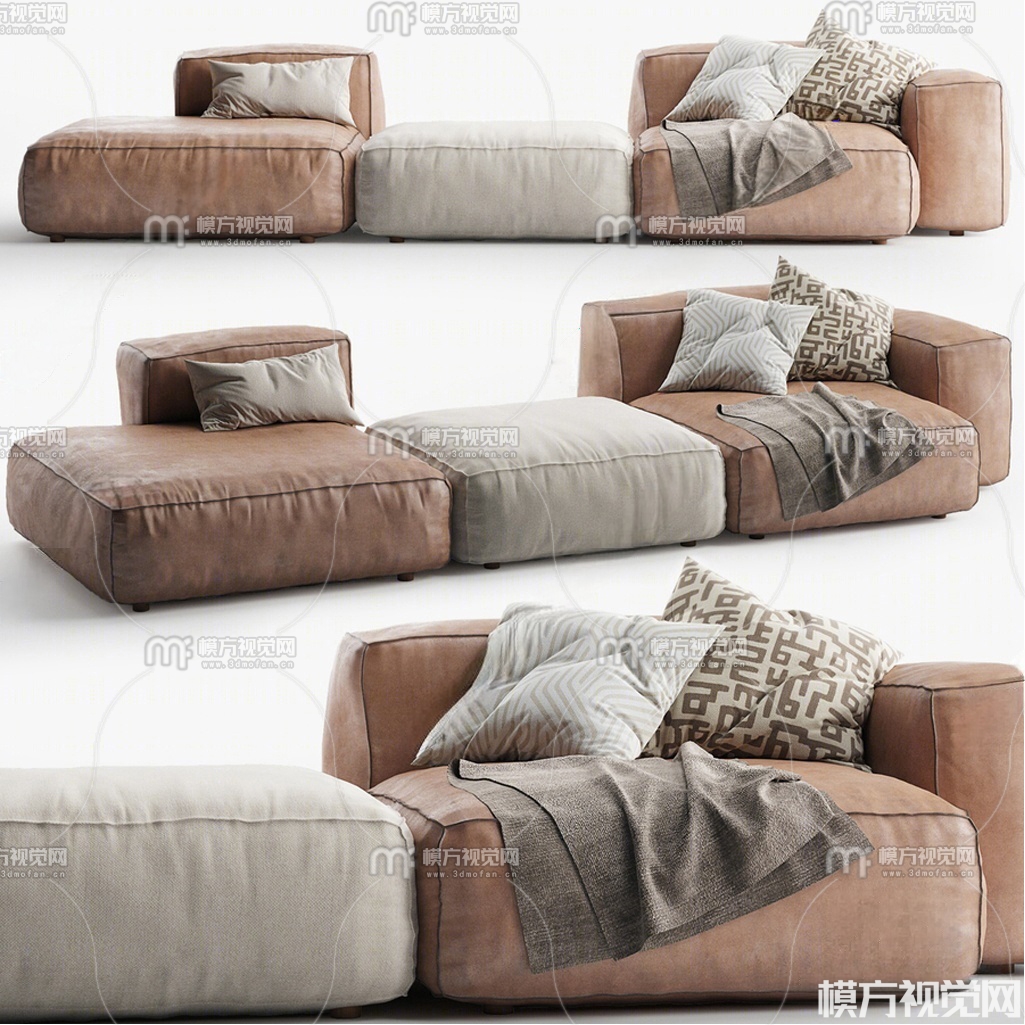 现代布艺皮革多人沙发3D模型(ID:0026088)