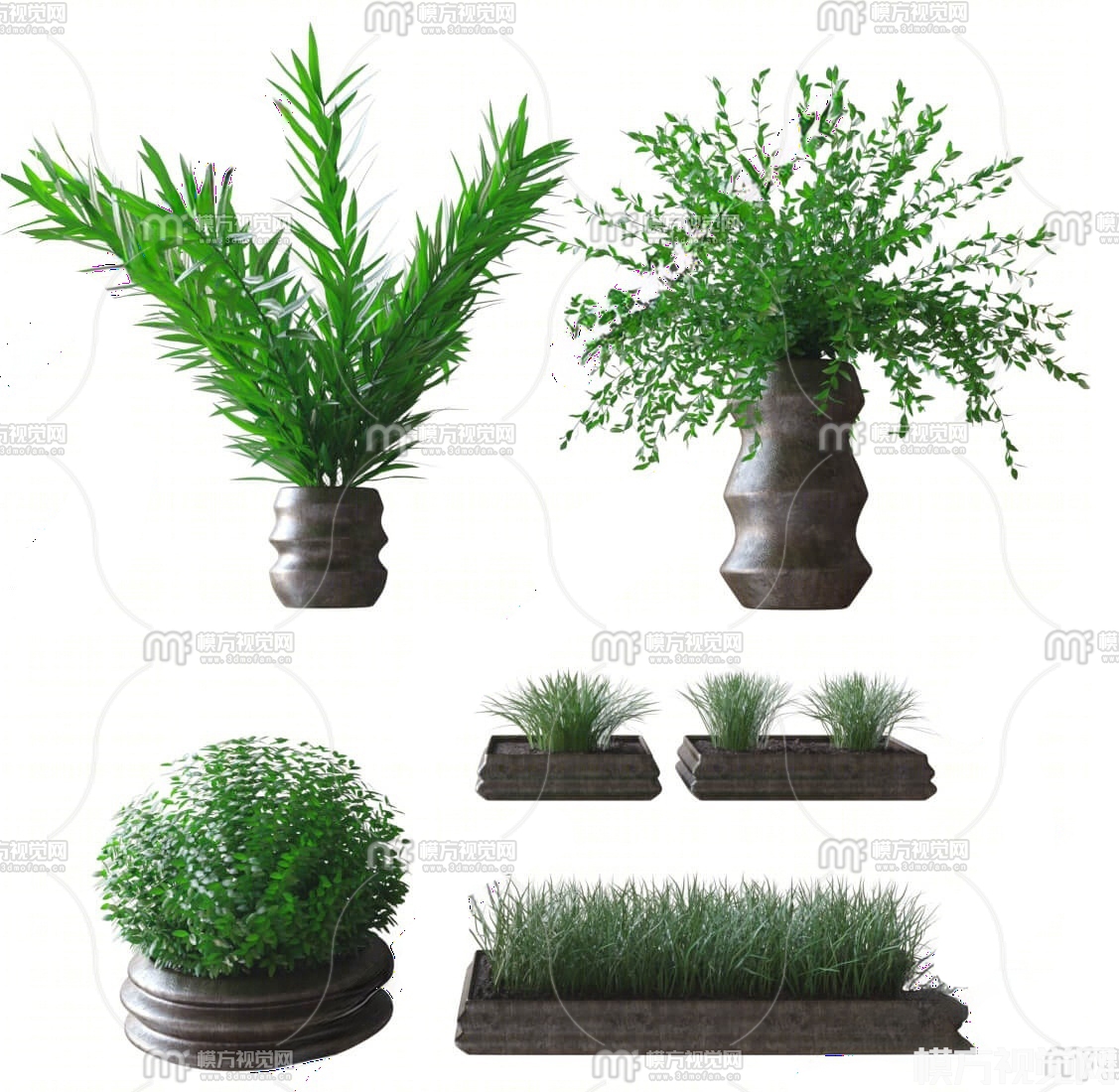 现代绿植盆栽组合3D模型(ID:0026105)