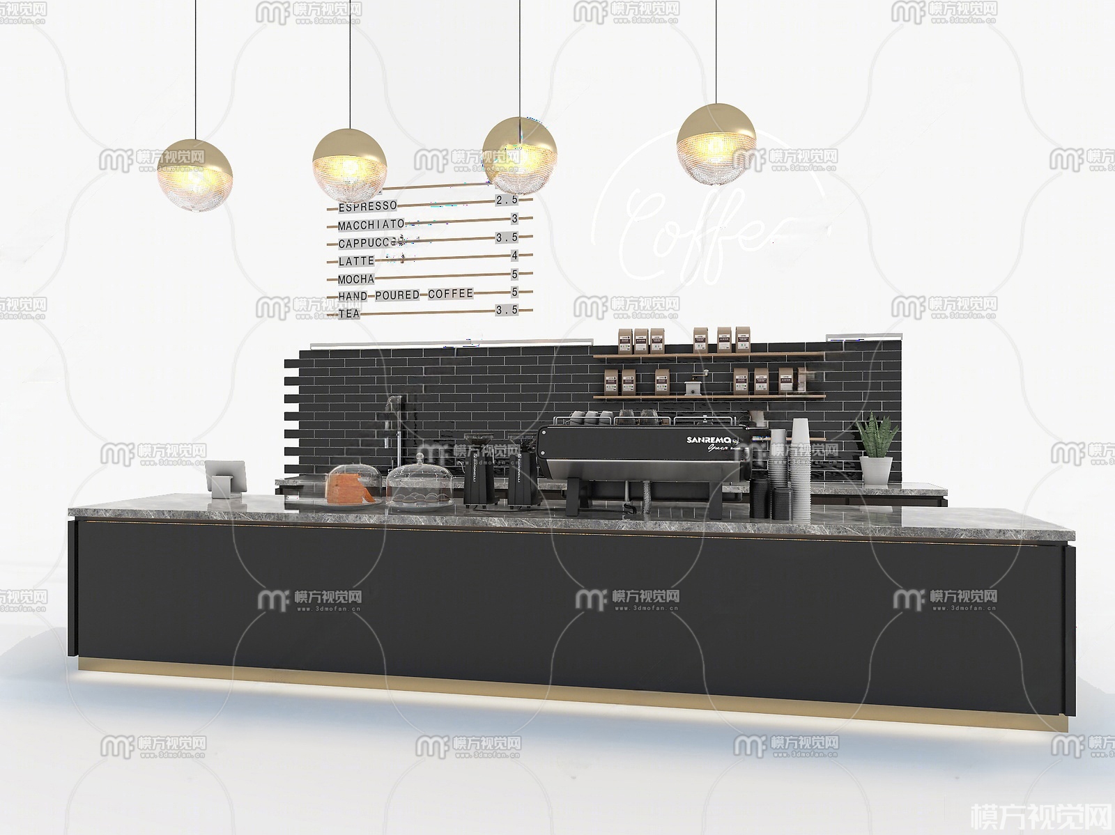 现代奶茶咖啡店吧台3D模型(ID:0026121)