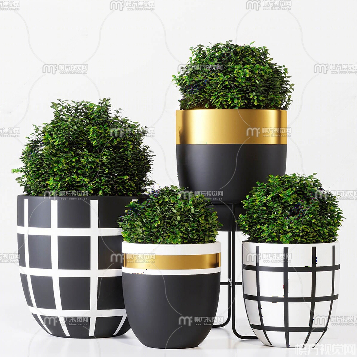 现代盆栽组合3D模型(ID:0026139)