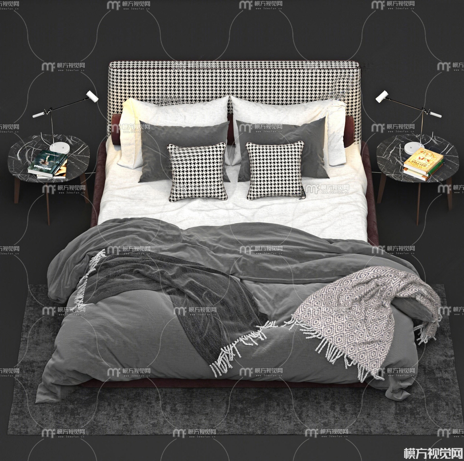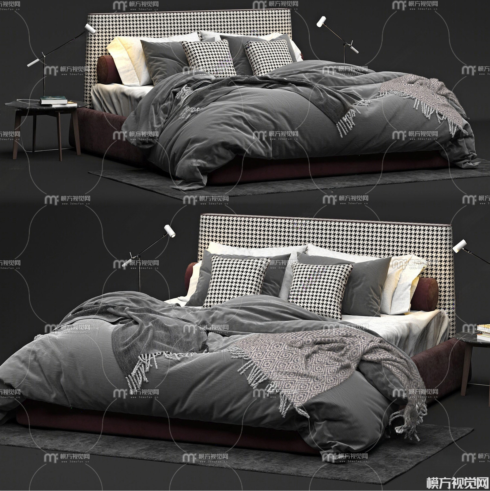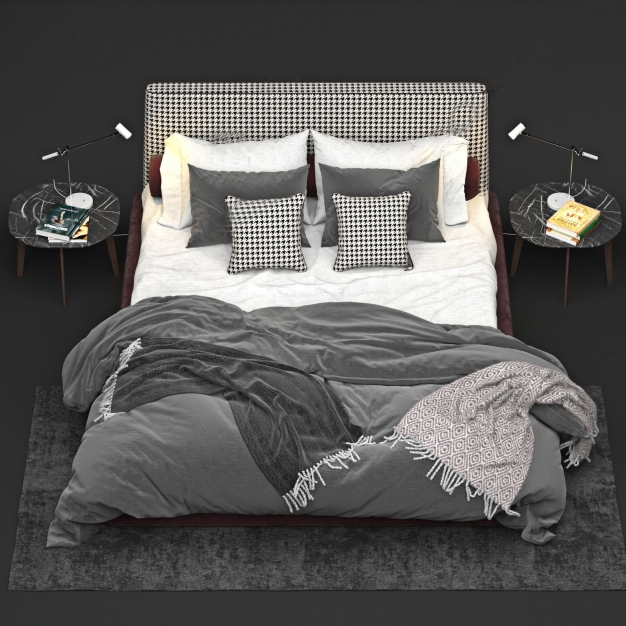 现代双人床3D模型(ID:0026239)
