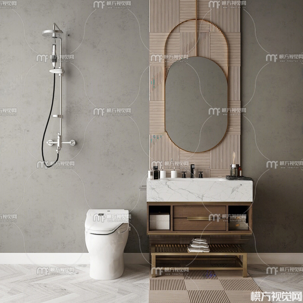 现代浴室柜 马桶 花洒组合3D模型(ID:0026340)