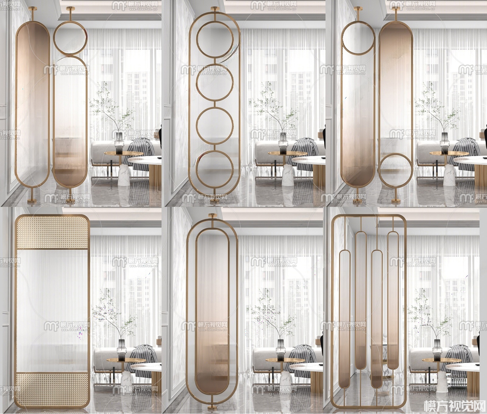 现代长虹玻璃屏风隔断3D模型(ID:0026346)