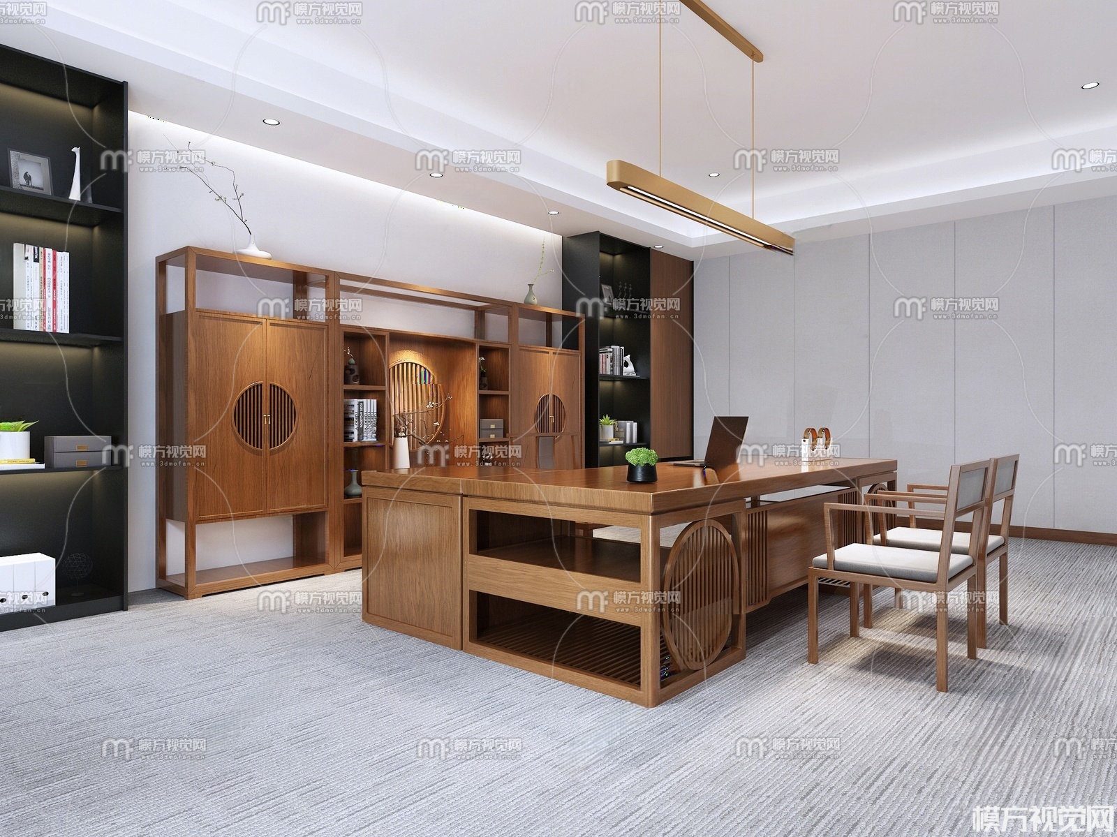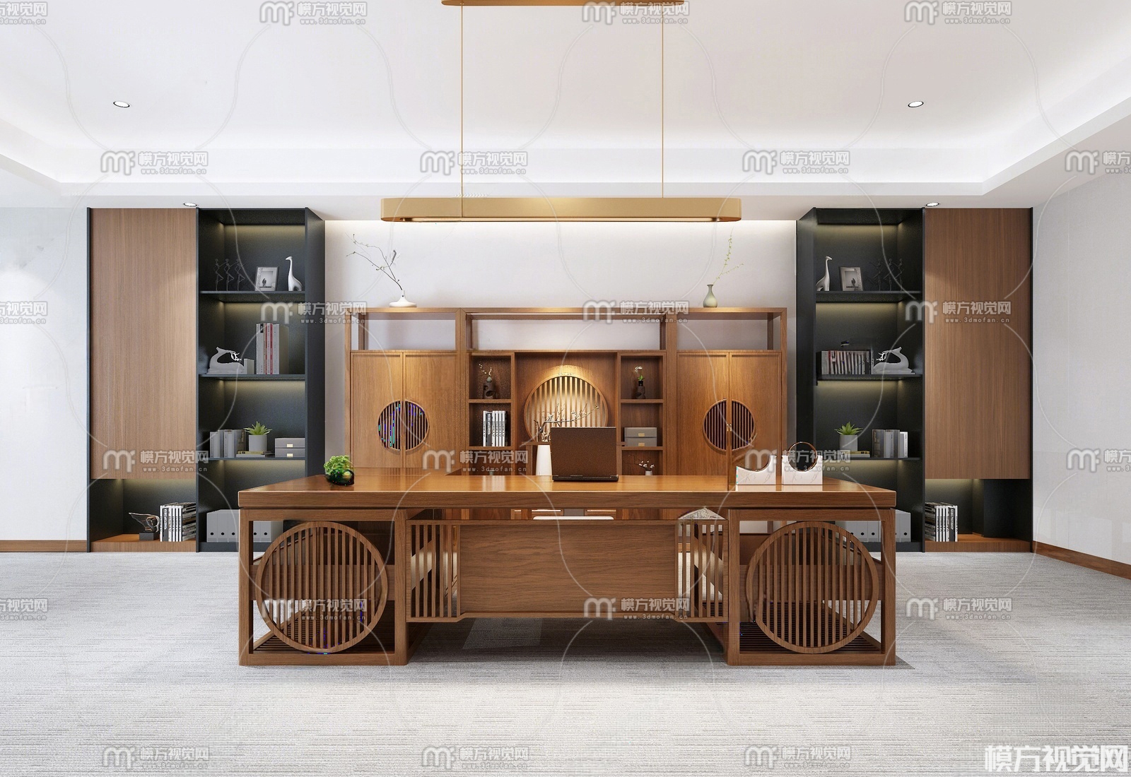 新中式董事长办公桌3D模型(ID:0026381)