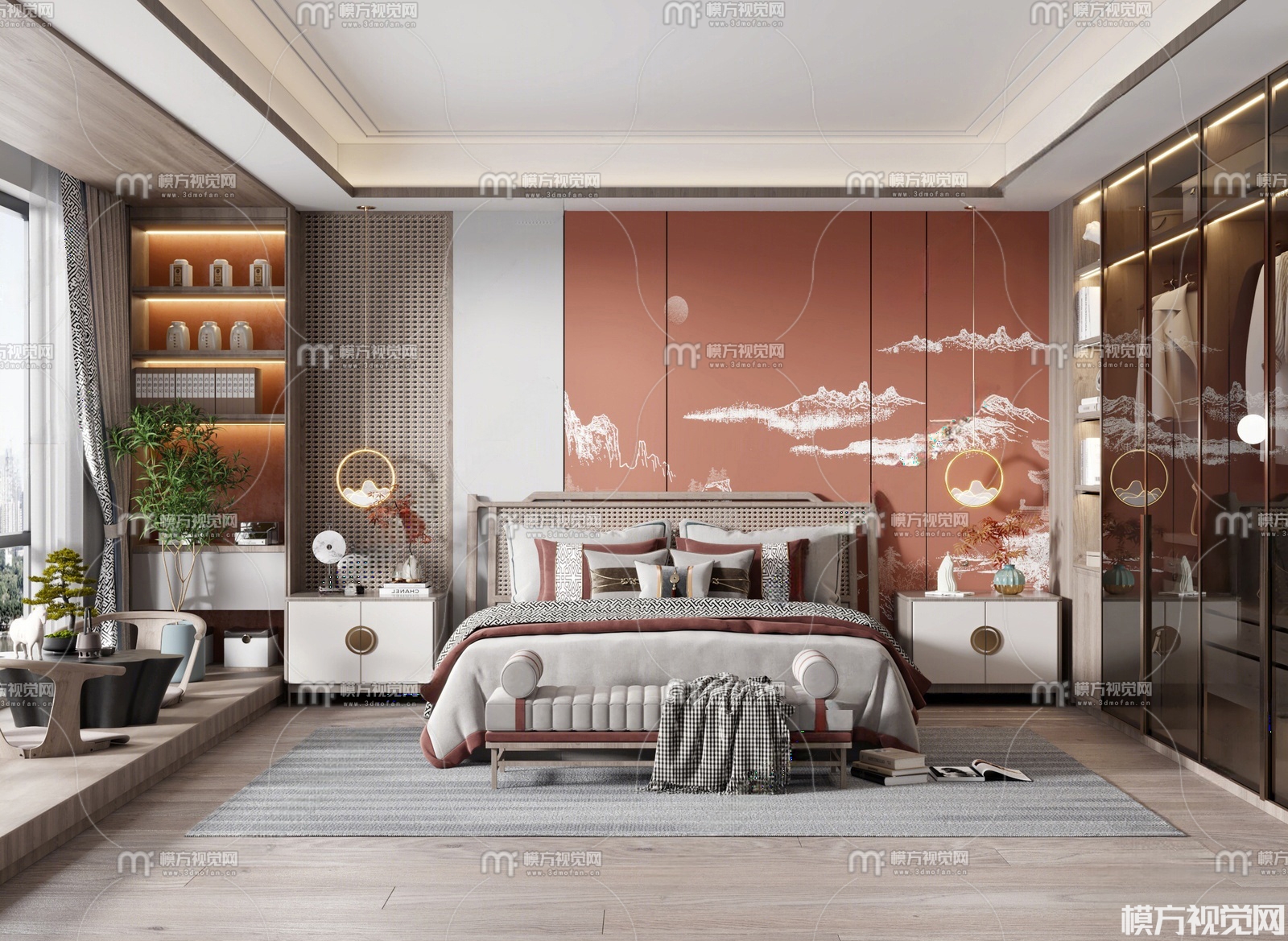 新中式家居卧室 主卧3D模型(ID:0026417)