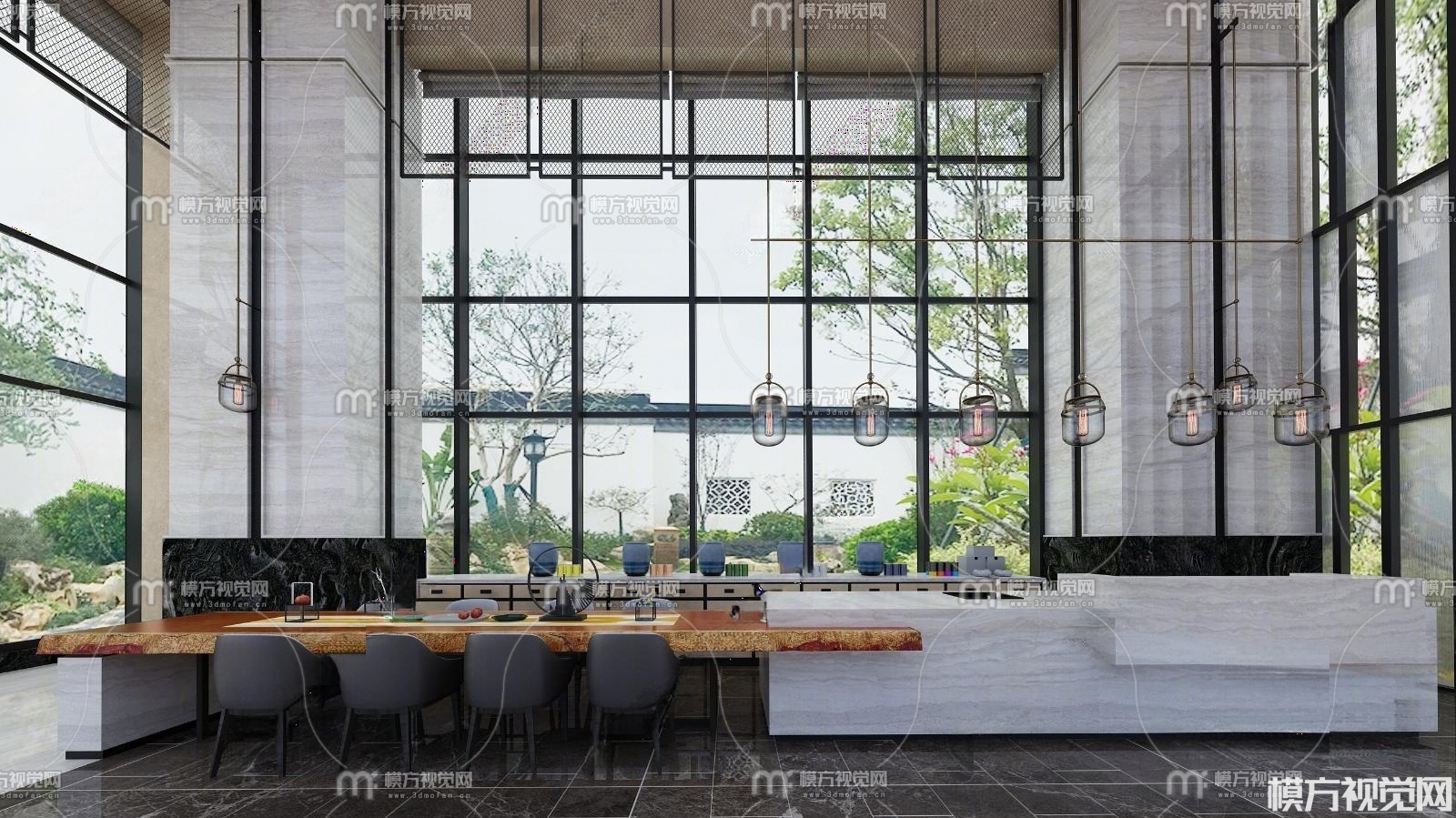 新中式酒店餐厅3D模型(ID:0026421)