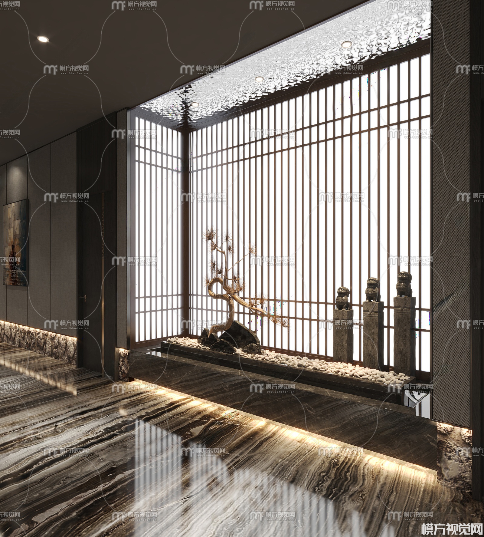 新中式足浴会所过道3D模型(ID:0026465)