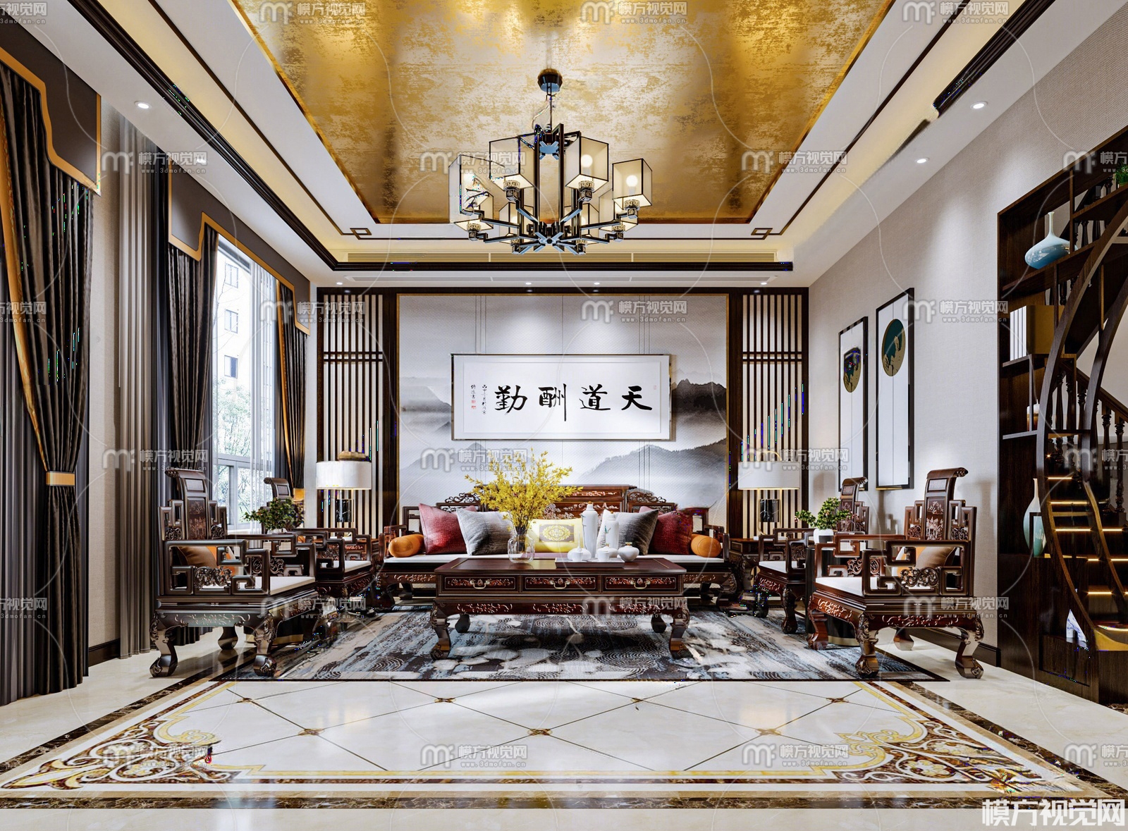 中式别墅客厅3D模型(ID:0026512)