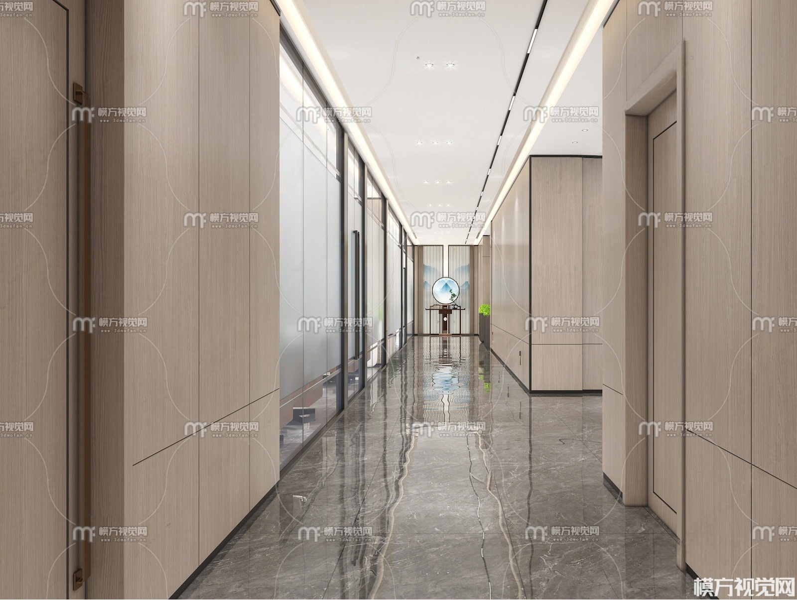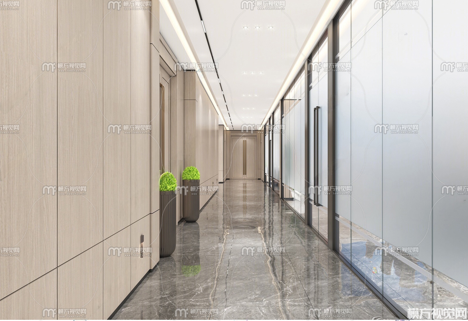 现代办公室过道3D模型(ID:0026516)