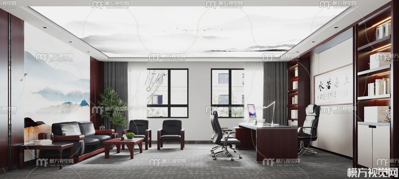新中式经理办公室3D模型(ID:0026536)