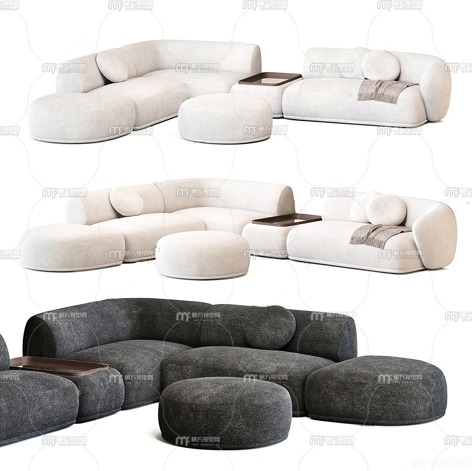现代布艺多人沙发3D模型(ID:0026560)