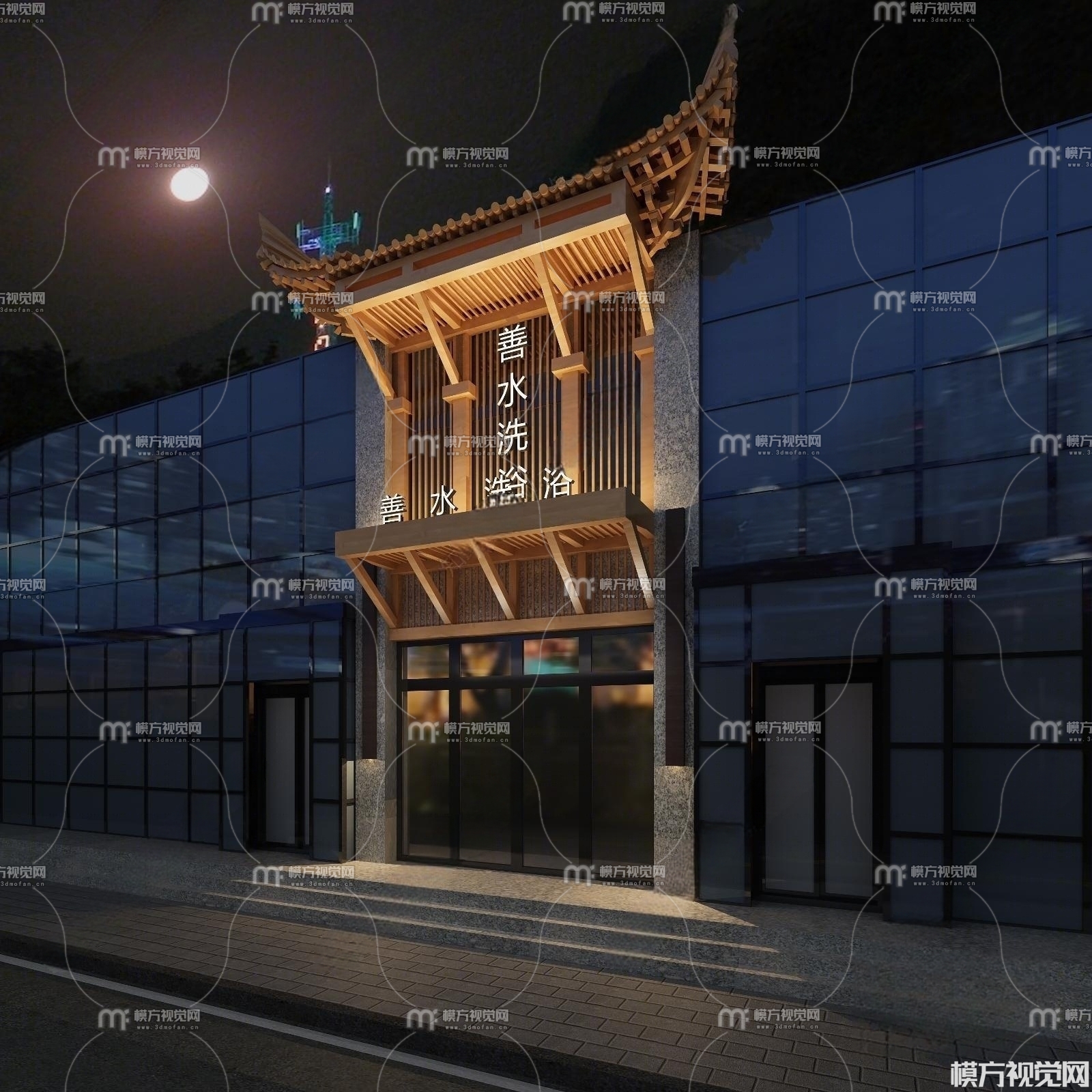 新中式洗浴中心门头3D模型(ID:0002658)