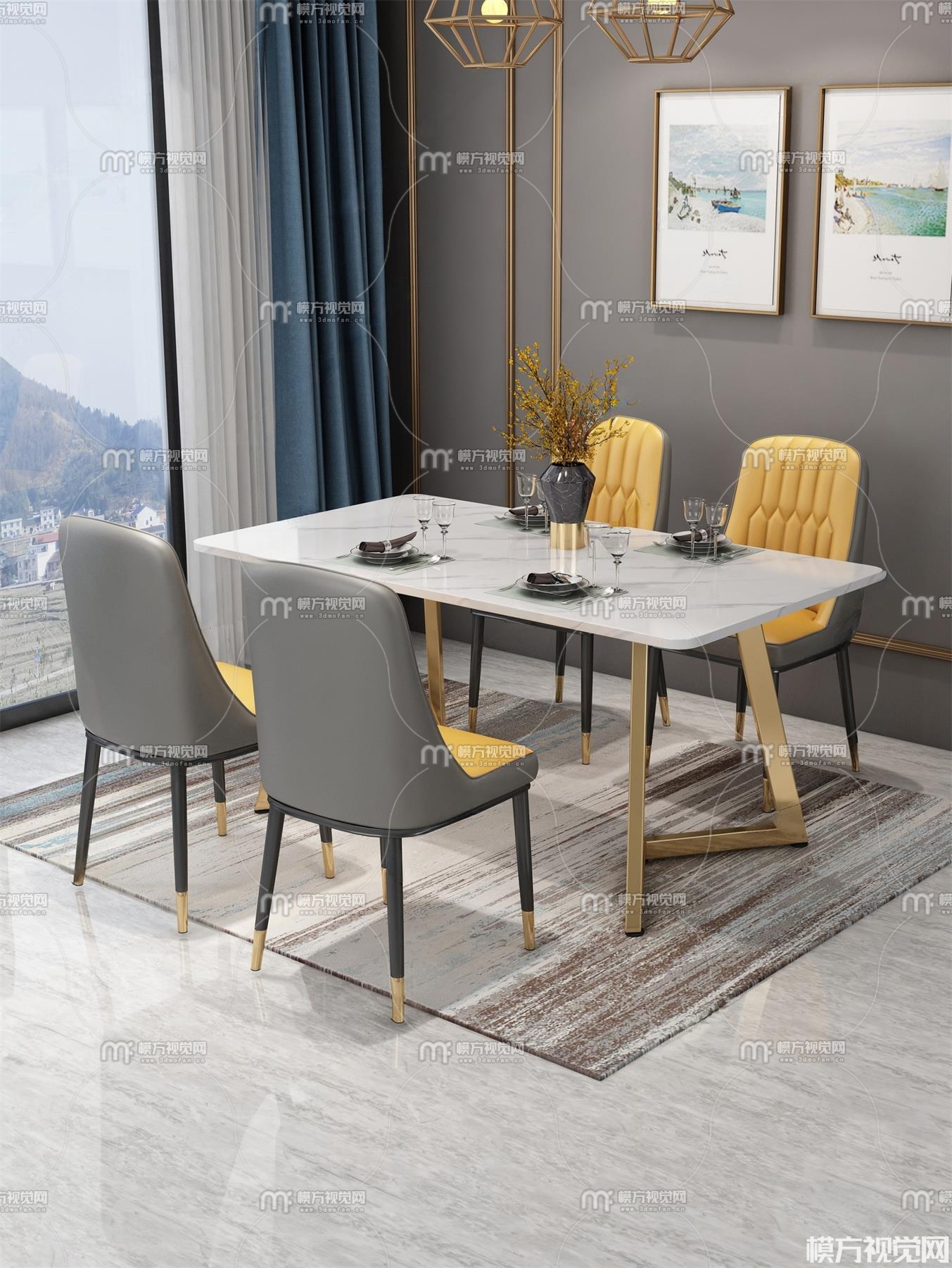 现代餐桌椅3D模型(ID:0026651)