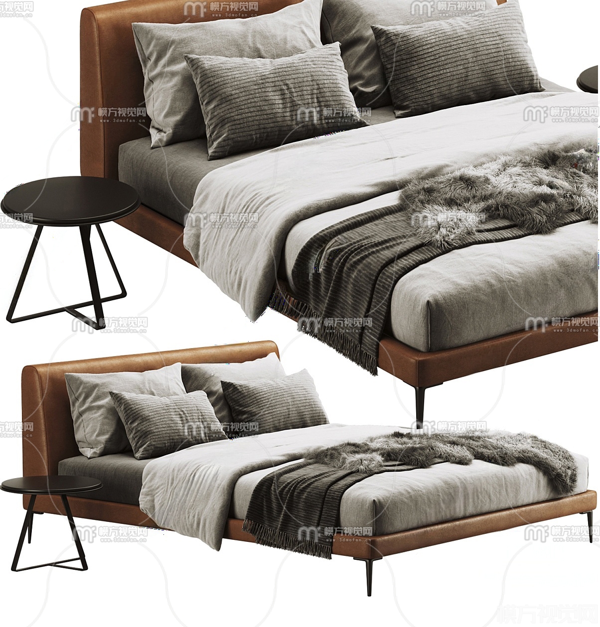 现代双人床3D模型(ID:0026717)